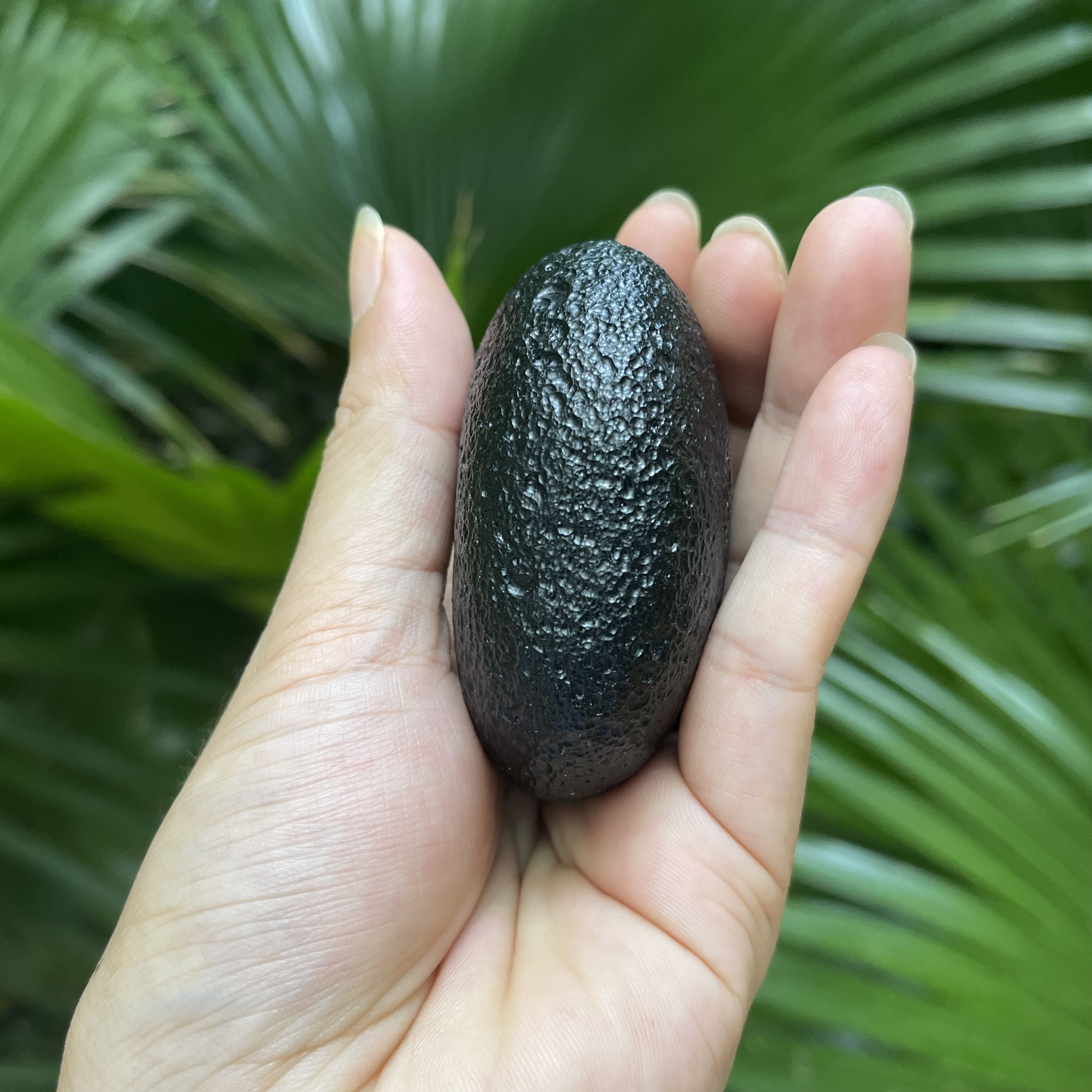爱心形状玻璃陨石雷公墨,这是雷公墨中少见的微孔墨,表面气印密集细腻,很有美感的一颗,其重170克。