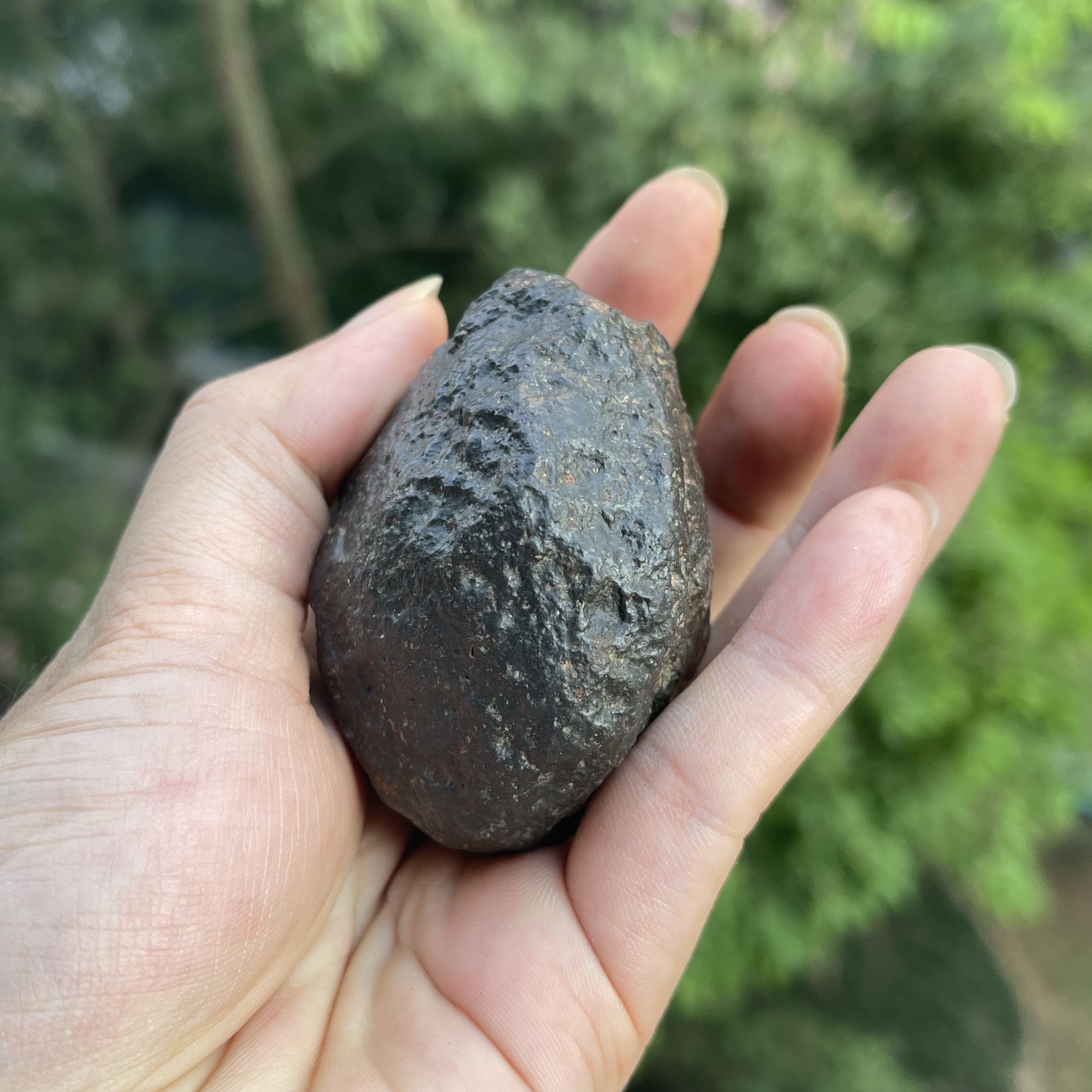 2021年发现非洲阿尔及利亚的冲击熔融石陨石手把件,其重约205克。