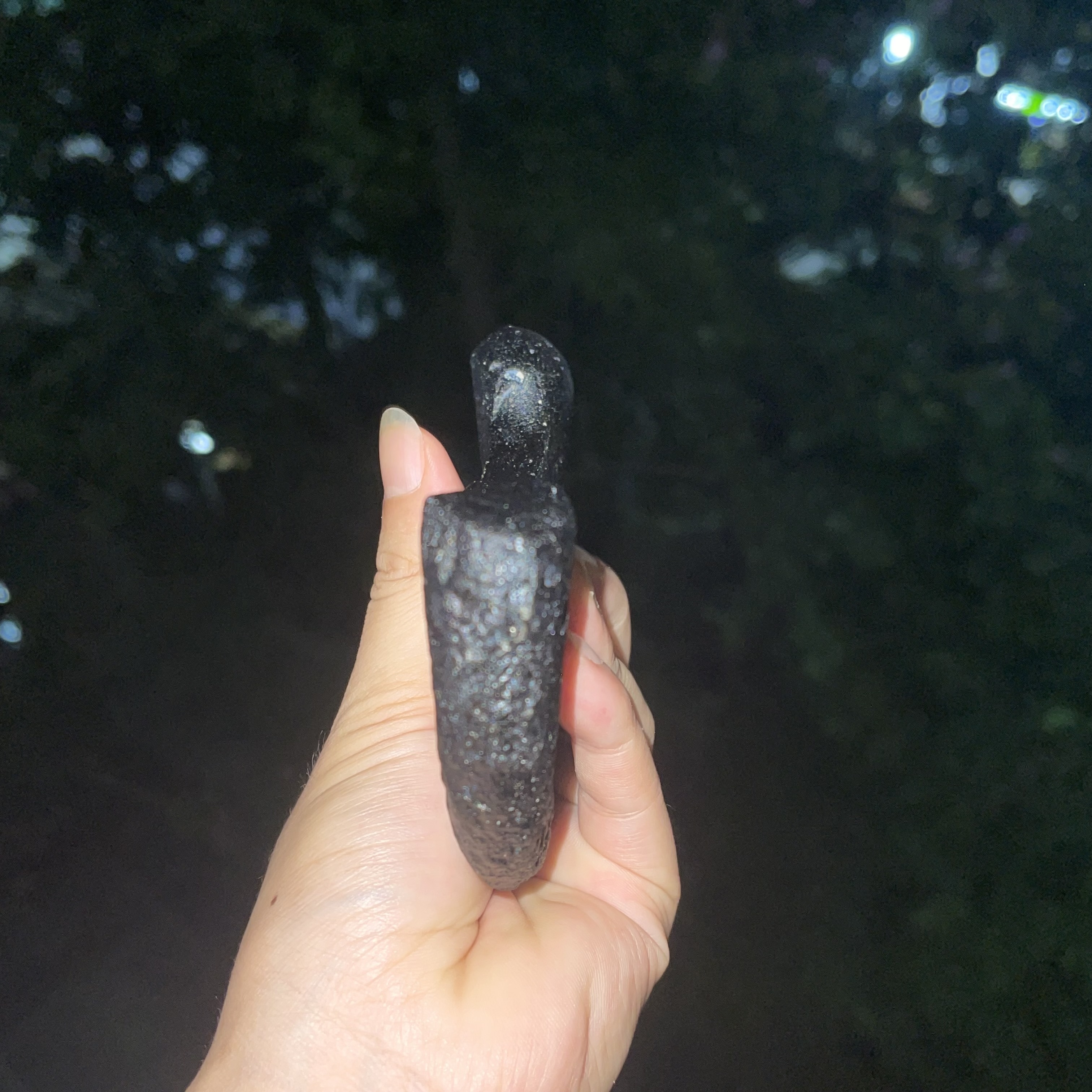 罕见月亮形状玻璃陨石雷公墨,一颗孤品级别的存在,其重约258克。